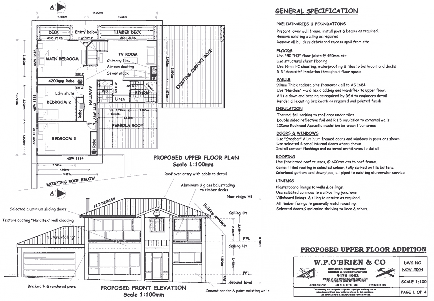 First flor addition consisted of main bedroom with WIR & ensuite, bathroom, 2 bedrooms and a TV area. The garage roof was changed to a pitched tiled roof and existing brickwork rendered & painted.